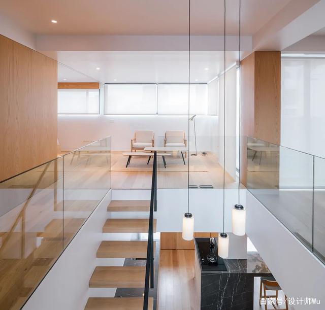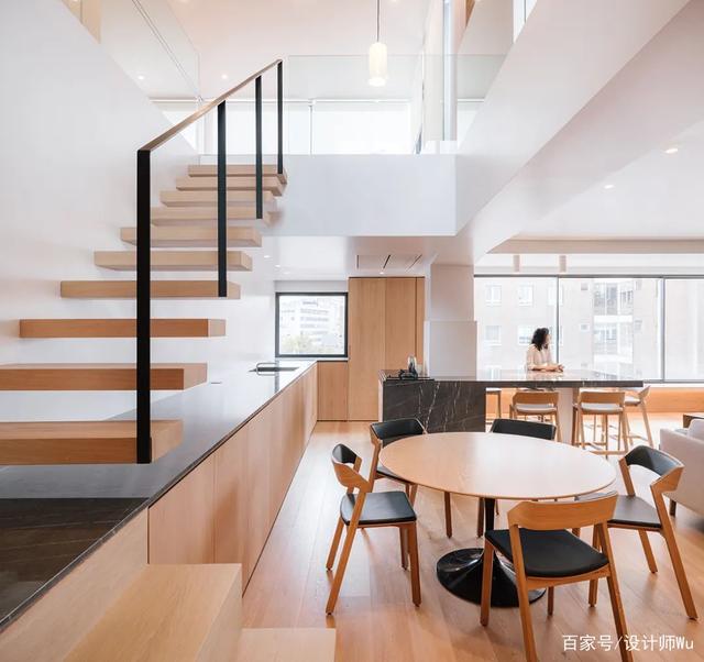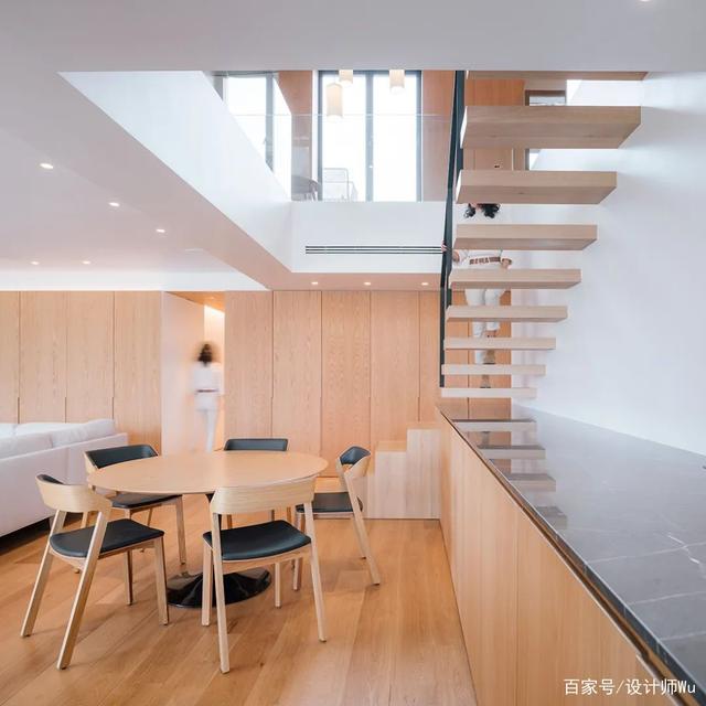 整体空间的造型通过橡木和黑色大理石这两种材料完成,从根本上简化了房屋的审美语言,并提供了天然的、原始的环境。空间色彩以白色和原木色为基础,让空间看起来更加统一。