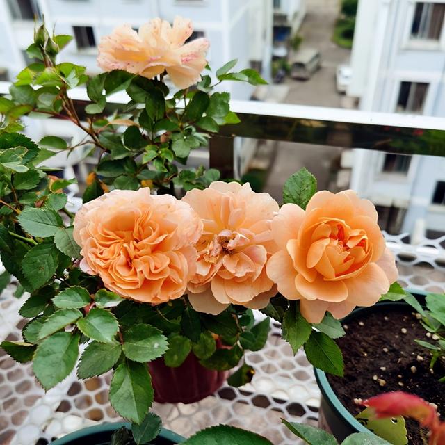 如果大家问我想要在阳台上种月季,哪种合适的话,那我肯定要让你种微月“果汁阳台”。微月是什么意思呢?这么说吧,其实它就是一种比较小的月季花,形状比较小一点,在面积比较小的地方种是再合适不过了,尤其是像阳台、露台等等。果汁阳台属于微型月季的一种,其颜值高、种植方法简单、擅长分枝、爱开花、不容易生病、生命力顽强,优点真是多得数不过来,因此受到了大众的喜爱。尤其是没有什么经验的花友,果汁阳台简直是太友好了,哪怕你总是忘掉要修剪它,它仍然可以长的特别的好,枝繁叶茂、繁花似锦,一点不会因为你不打理而长不好。