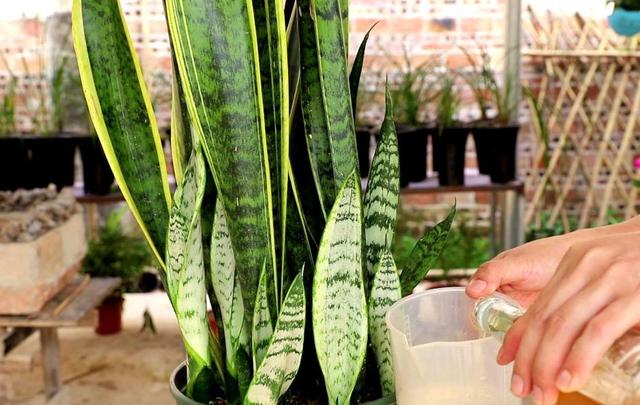 想要虎皮兰叶片长得挺拔饱满又有光泽感,在植株生长期要定期给它施肥,哪怕是自己在家发酵的淘米水、果皮水,经常给它浇一些,也能让它长得旺盛。虎皮兰施肥也不能光施氮肥,只用一种元素的肥料,虽然能促进叶子生长,但是它叶面的美丽斑纹会变得越来越淡,最好每个月给它用1~2次多元素的复合肥,复合肥里面含有植物生长所需的氮磷钾三大元素,既能促进植株生长,又能让叶色更加亮丽。