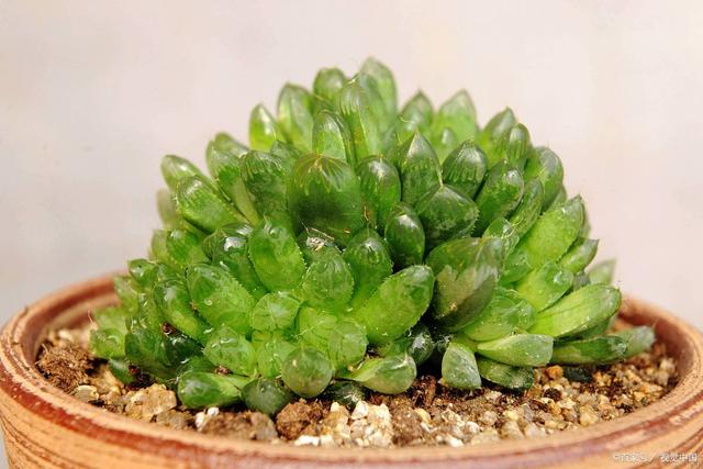 玉露生长期的时候不喜欢积水的环境,只要盆土稍微湿润就可以,如果长期积水,容易出现烂根的情况,可是生长期土壤太过干旱,叶片又会干瘪,所以说浇水一定要注意一些。