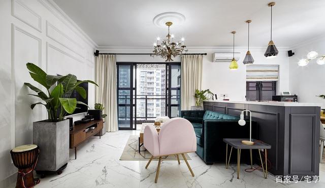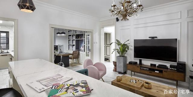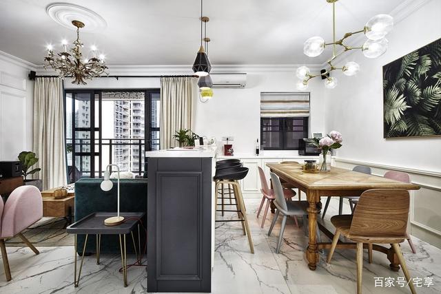 客厅和餐厅之间没有明显的隔断,半隔断的设计看起来更加通透,也拉近了家庭成员之间的距离,促进了家人的沟通。