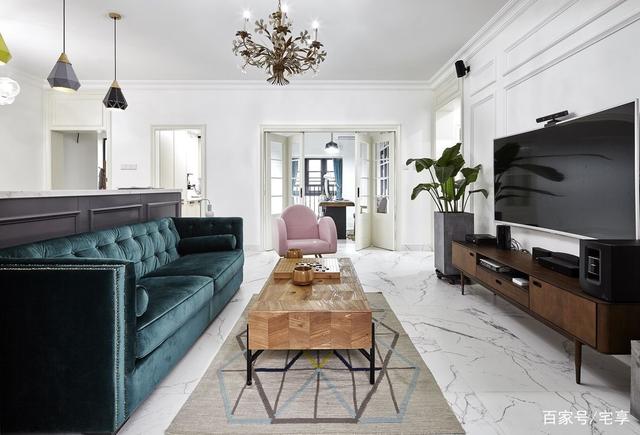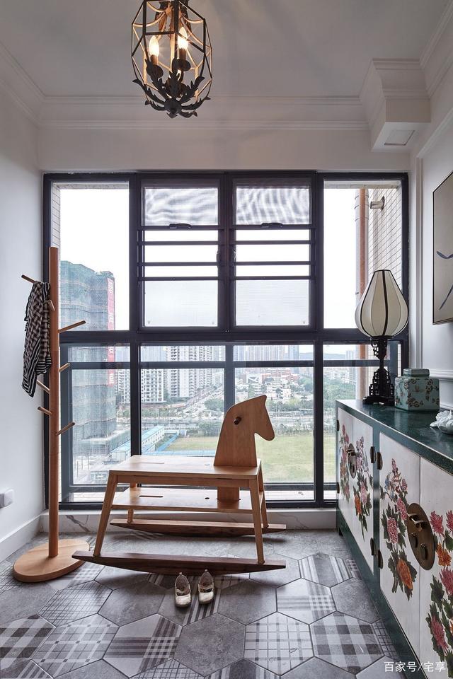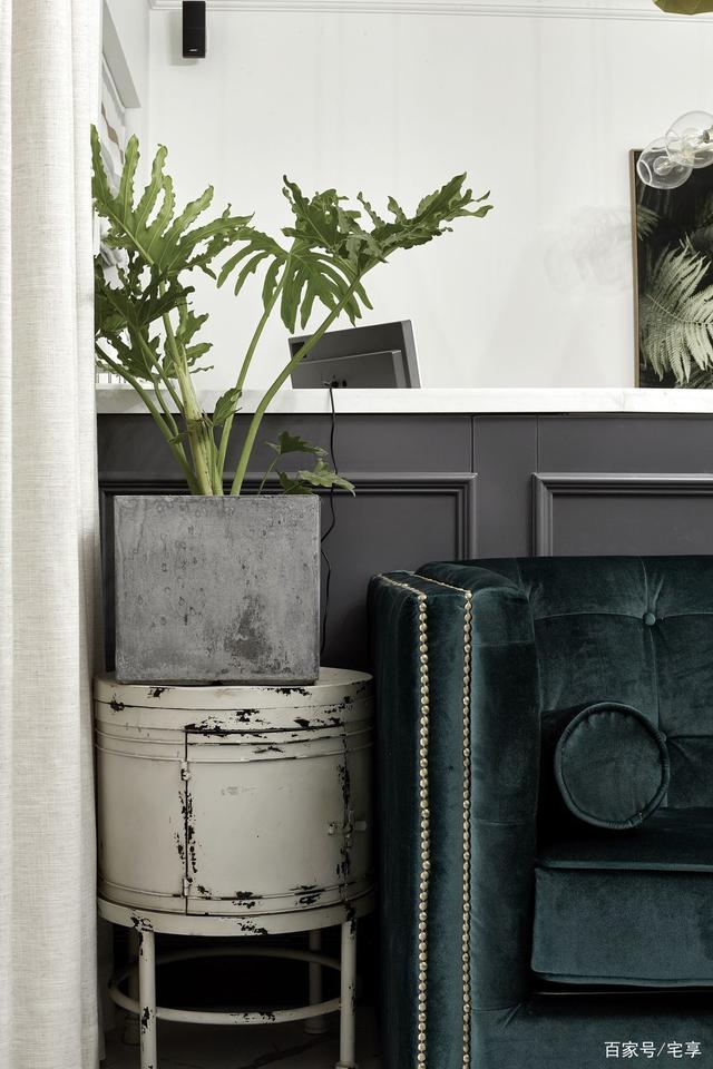 客厅角落里摆放的做旧花盆也是业主最喜欢的一处设计,新和旧的视觉碰撞,让整个空间变得更加独特,将新鲜的事物衬托的更加奢华,将旧的事物衬托的更有品质,充满了艺术感。