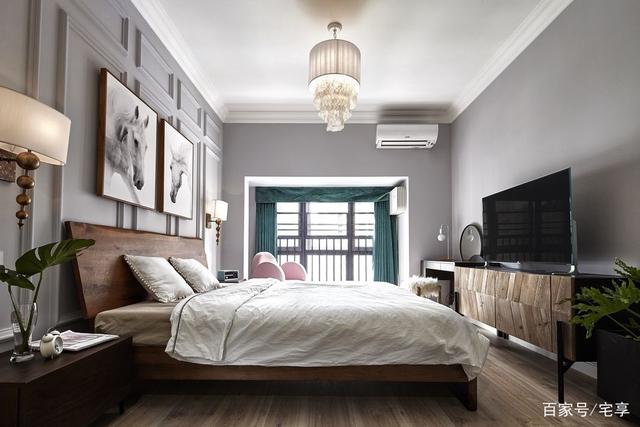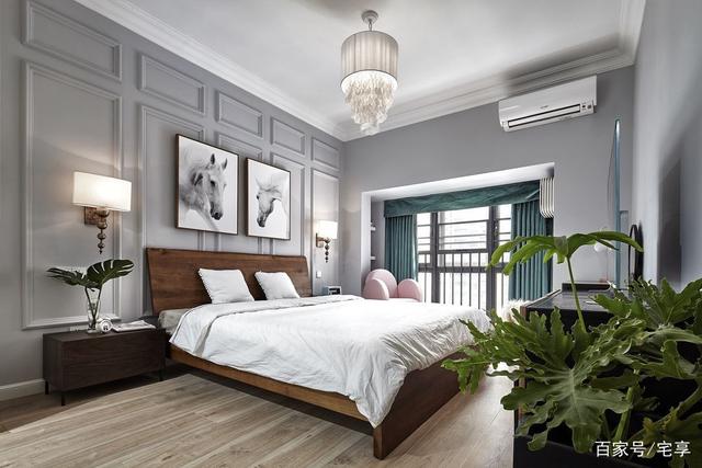 卧室选择了高级灰的墙壁,淡雅的灰色打造了一个舒适静谧的睡眠环境。