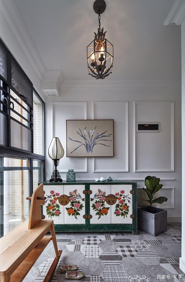 进门玄关的位置是一个独立的空间,这个户型也是很受大家的喜爱,玄关的位置比较独立不会和客厅之间有太多的融合。进门就可以看到两个印花的鞋柜,这种印花估计家里的父母都会比较熟悉吧,不过和绿色结合在一起做成鞋柜,却是有了一种不一样的感觉,还有一种复古的气息。
