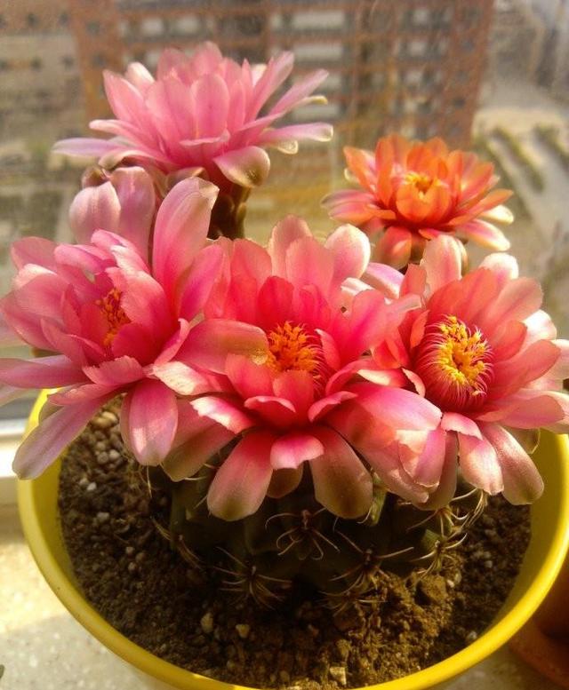 听名字,是不是像到一个黑壮的大汉形象,我只能说,是你想多了,黑金刚就是一个小娇娘,连身上的刺都是软的,扎不了人。黑金刚通体深绿色,幼苗的时候是球形,长大了变成了圆柱形,但整个株型比较的纤细,说它是个小娇娘真的是实至名归的。真不知道,怎么会得了这么一个名字。黑金刚的品种有很多,花色也丰富,但通常是以一种花色为主色,其余的颜色搭配开放,一次就能开花几十朵。