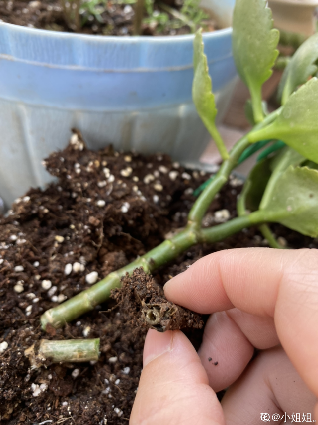晾干后的枝条,就可以插进干净透气的土壤、沙子、鹿沼土、蛭石、珍珠岩等基质里,浇透水后等待生根了。