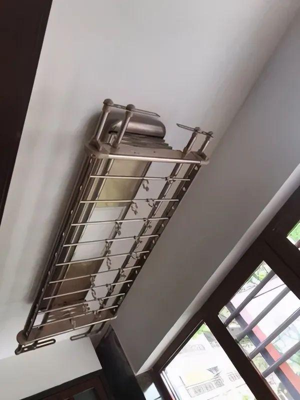 说到不落地衣架,日本主妇的例子就很值得我们学习,比如紧靠窗户的“下拉式晾衣架”。
