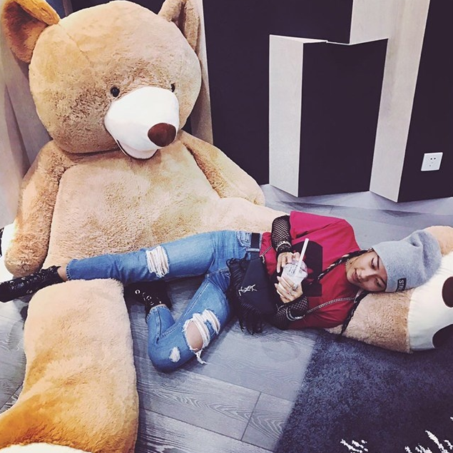 吉克隽逸家的房间风格相对比较大胆一些,墙壁是做的黑白立体造型,非常有意思,地面铺的灰色地板也非常百搭,地板上还放了一张黑色的毛茸茸的地毯。跟所有女孩子一样,吉克隽逸也喜欢毛绒玩具,不过她的玩具有点大,她在房间的角落里放了一个比她人还高的玩具熊,而她可以将自己整个人都躺在熊的身上,看着非常舒服。