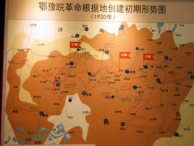 鄂豫皖根据地位于湖北、河南、安徽三省交界处,包括我省的六安、金寨、霍山、舒城、岳西、太湖等地,创造了“二十八年红旗不倒”的奇迹