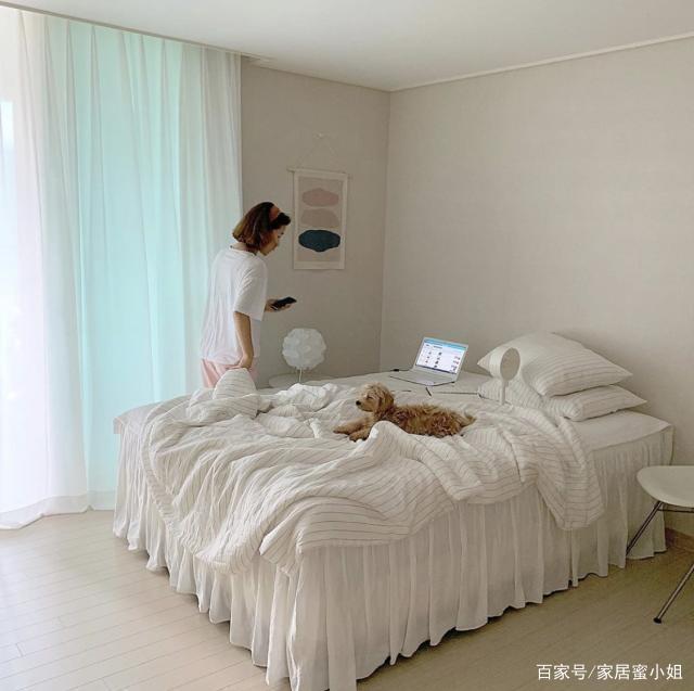 主卧室的设计是以白色极简为主的,浅色的窗帘并不能隔断阳光,而是能照耀出朦胧的美感。
