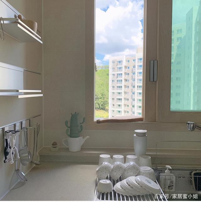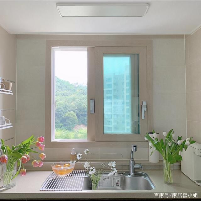 韩国妈妈在水槽附近设计了小窗户,这样每天洗碗筷的时候,还能看看外面的风景,在水槽附近摆放着小绿植当中装饰,即使是厨房的设计也不能忽视,
