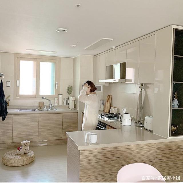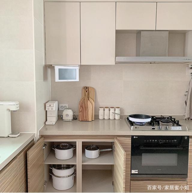 韩国妈妈的收纳技术也是非常强的,当你打开橱柜之后就明白了,里面所有的锅具都会摆放在里面,不会将其放在明面上,省着占地方又不美观。