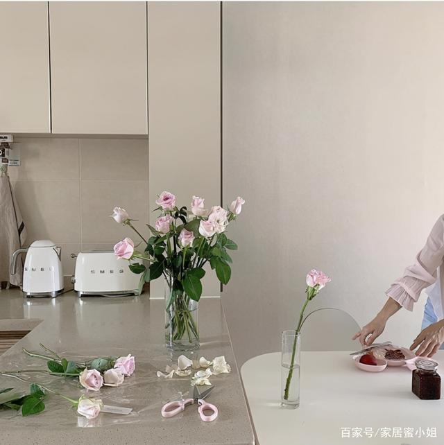 台面上的花是需要每天更换的,韩国妈妈每次出门买菜的时候都会带着花回来,这会让你的家居生活变得更清新,这样的生活你不羡慕吗?