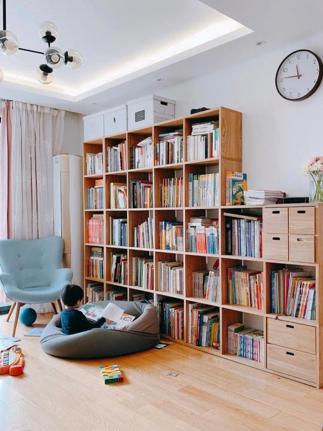 电视墙可以做成整面顶天立地式的书柜,也可以放沙发椅、可以放长条书桌、兼茶桌、兼小孩手工桌,可以是阅读室、还可以是亲子互动区等等。