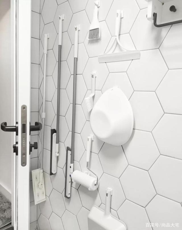 用上拖把架,就可以把所有的清洁物品全都收纳到墙面上,充分利用墙面空间来进行收纳。特别是卫生间的门后空间,是收纳家里清洁物品的最佳位置,开门的时候也不会影响卫生间的美观。最重要的是,这一款是免打孔的,一贴一粘就行,并且颜值也非常高哦!