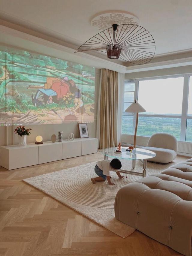 当客厅少了茶几,客厅瞬间就能变得开阔不少,家里小朋友的活动区域也随之扩大,岂不美哉。