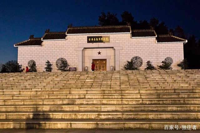 建筑面积达444平方米的金寨县红军纪念堂,于2009年5月重建并对外开放,大门上方“金寨县红军纪念堂”由洪学智上将题写,堂内两侧长廊陈列有领导人题词的碑石,吊唁大厅陈列老红军照片、英名册、红军雕塑及在金寨组建和战斗过的十一支红军队伍序列表,这里是祭奠老红军的殿堂。可惜我们到得太晚,未能进入祭奠。