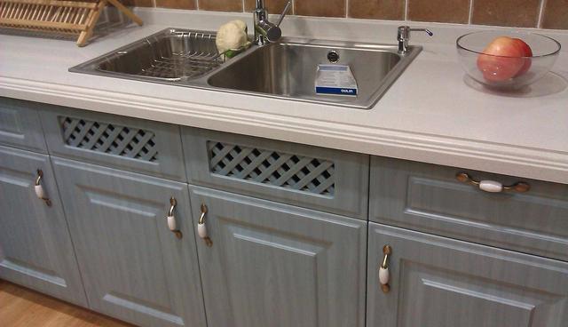 甚至可以不留通气孔,直接将橱柜门做成镂空的——镂空造型或者镂空柜门,可能会导致油烟在这里堆积。虽然外观好看,却不建议当成首选。