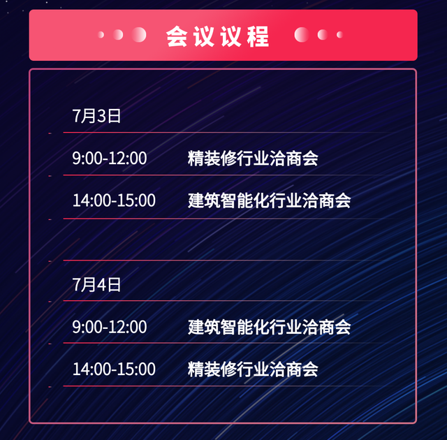 本次行业洽商会全面考虑到房企在这方面的顾虑,在为期2天共4场的洽商会中,精装修和智能化分别安排在半天时段。