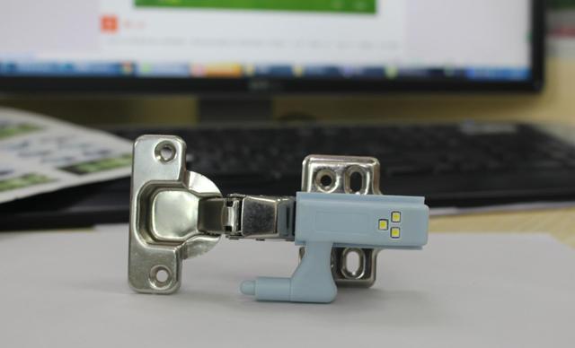 如果没有预留线路,或者没有选装配件,后期可以自己去买一个铰链灯。把这个东西直接扣在铰链上就行了,打开柜门后会自动亮起。铰链灯装5号电池,一节电池正常用上一年都不需要更换,非常方便。