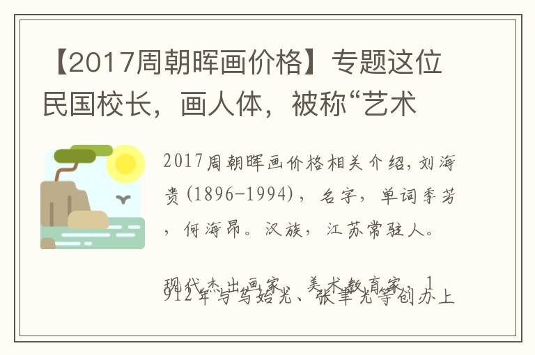 2017周朝晖画价格相关介绍,刘海贵(1896-1994),名字,单词季芳,何海昂。汉族,江苏常驻人。 现代杰出画家、美术教育家,1912年与乌始光、张聿光等创办上海图画美术院,后改...