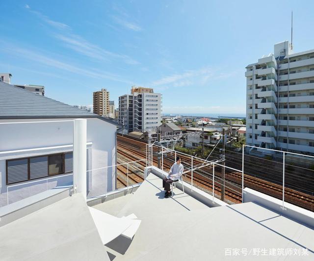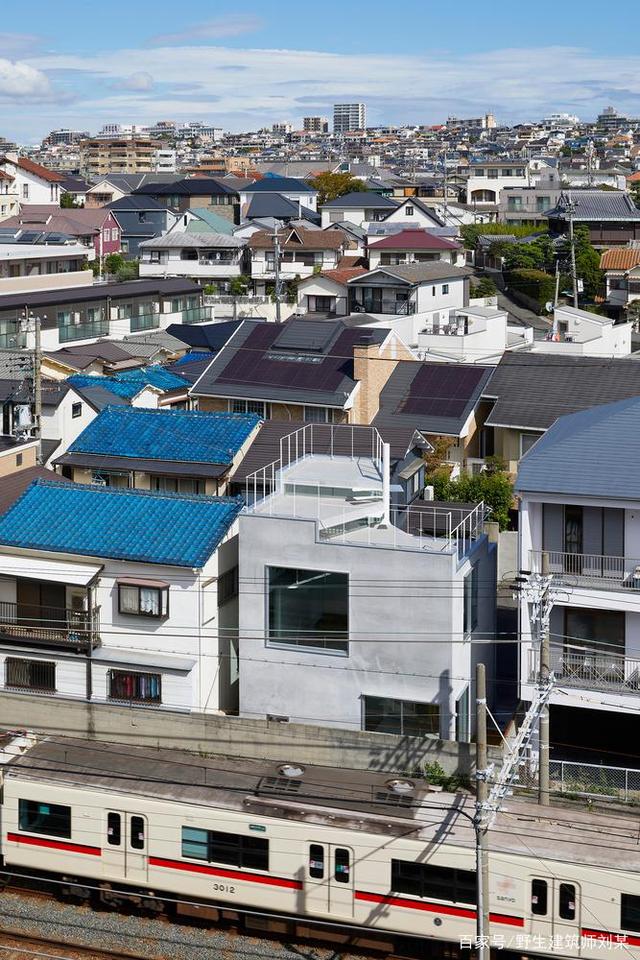 建筑外观该项目位于日本神户,对于很多动漫迷而言,或许《哆啦A梦》里面大雄的家是大家对日本住宅的主要印象,那是一个独栋住宅,在日本这种住宅类型称为一户建。土地私有和建筑私有,面积大小不一,但这种住宅一般在日本郊区。并且常常处在某个较为成熟的住宅区内,该项目也不例外,场地三侧与邻居家相邻,并且临近火车轨道。业主需要在这个地块上构筑一个五口之家,可见其挑战性有多大。