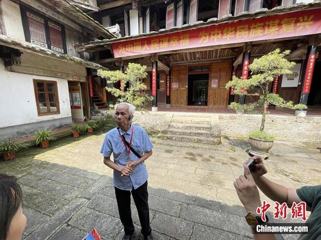 横口乡朱德红军革命旧址讲解员林兴阵向媒体团讲述当时红军故事。中新网记者 吴涛 摄