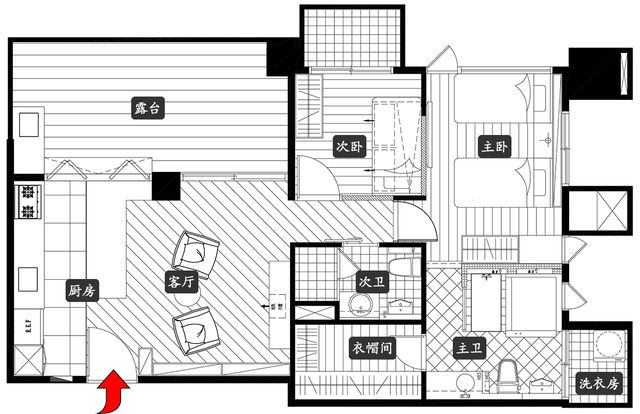 本案例户型2房1厅2卫,套内面积66㎡,居住人数2个大人,坐标台湾。