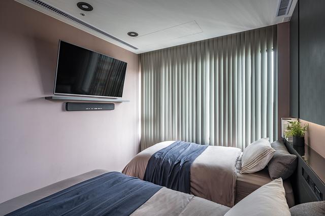 ▲不用窗帘,木百叶给人一种俐落而优雅的高级感,还可避免布帘的尘蹒疑虑,看起来也是卧房的好选择。