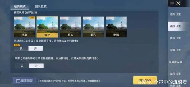 如果特种兵们在海岛和雨林对战时,画面风格可以选择经典风格。而在沙漠地图中,可以选择电影风格。然后打开抗锯齿,屏幕亮度直接调到最大,这样特种兵可以更好地发现敌人哟~