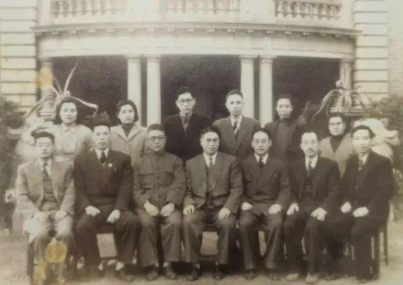 前排左起:王尧山、沙文汉、刘长胜、刘晓、潘汉年、刘少文、吴克坚