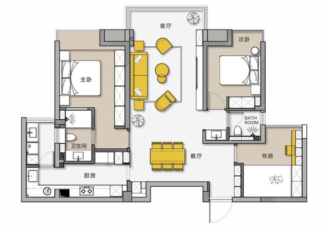 结合现有的空间缺陷,布局改造如下。