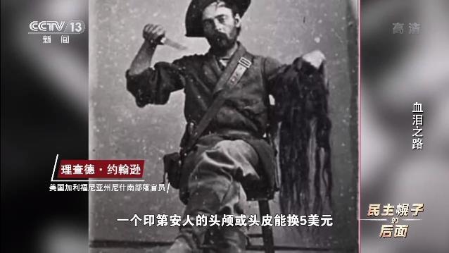 美国加利福尼亚州尼什南部落官员 理查德·约翰逊:(在十九世纪五六十年代的加州)一个印第安人的头颅或头皮能换5美元,而当时的日均工资是25美分。5美元,那是很大一笔钱。