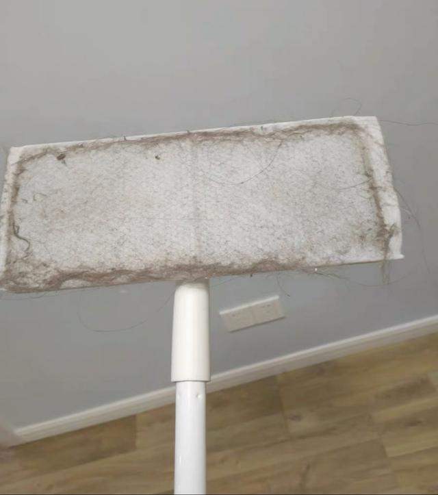扫把扫地面很多遍,还是有灰尘和毛发,我家直接抛弃扫把,用静电除尘拖把,毛发、灰尘、毛絮直接被吸附在上面。