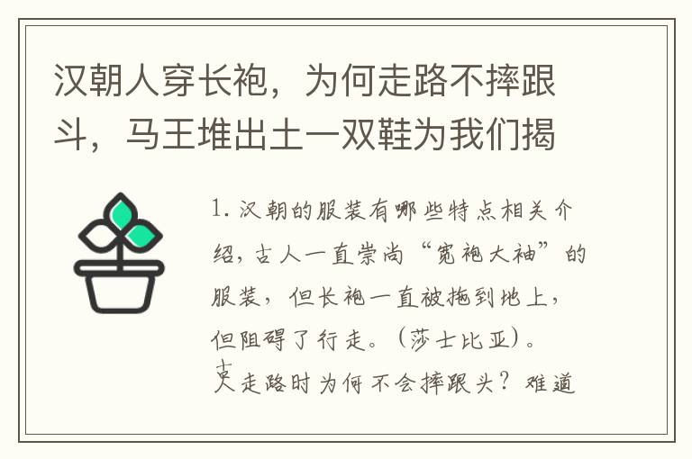 1.汉朝的服装有哪些特点相关介绍,古人一直崇尚“宽袍大袖”的服装,但长袍一直被拖到地上,但阻碍了行走。(莎士比亚)。 古人走路时为何不会摔跟头?难道他们有自己独特...