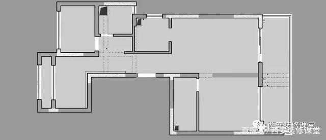 ▲房子原始的样子,进门是个狭窄的过道,通过过道朝南向分别是客餐厅以及主卧,而且主卧和客厅共用阳台;入门左侧分别是另外两个小卧室以及客卫空间。