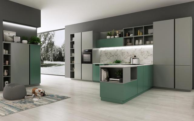 绿灰相间的门板展现了细腻的质感,与精致的造型布局形成了一个精致的视觉体系,让空间的精致感倍增。
