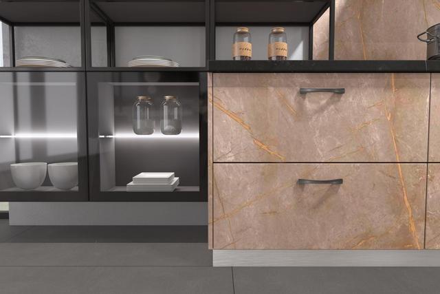 ▲司米橱柜当然,并不是所有的橱柜面板材质,都能将勃艮第红很好地表现出来。不同的材质,以及参差不齐的上色技术,都将会影响色彩的最终呈现,可能一不小心就会高级变俗气。不过,如果你选对了品牌,一切都不是问题。以司米橱柜拉维尔Pro系列为例,它采用了全新静电喷粉烤漆工艺,结合对大自然天然活力的色彩感悟,呈现出更加纯粹、高级的视觉感。
