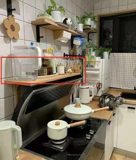 为什么这么说呢,这是朋友家的集成灶,当时没选带置物台的,后来还是自己装了,多此一举。
