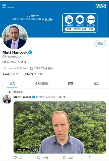 视频中,汉考克感谢了英国的医疗服务系统,夸赞了英国的疫苗接种工作领先于世界,英国处在恢复的边缘;他表示,能在内阁工作是自己一生的荣幸,也希望民众能继续支持卫生部门和政府的其他工作,一起渡过难关。第二天,前财相萨吉德·贾维德(Sajid Javid)接任卫生大臣。