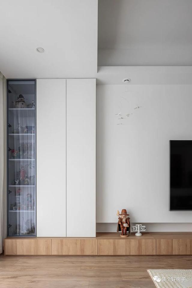电视墙一侧还设置了收纳展示柜,放置着各种收集来的小物件,充满着故事与回忆。