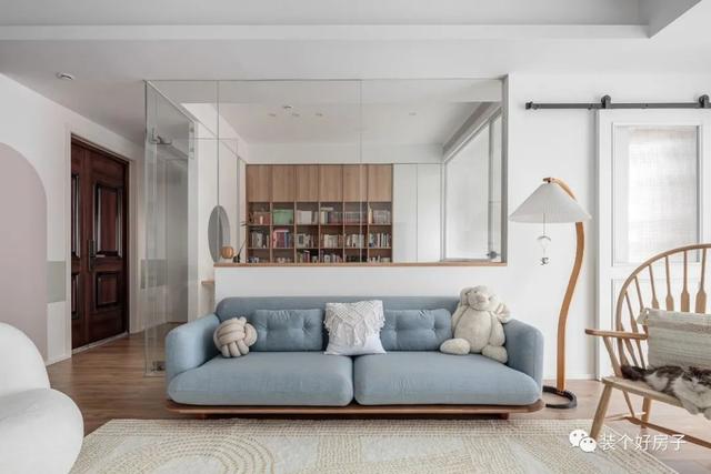 客厅与书房之间用部分玻璃隔断代替墙,大大增加了通透感与互动性。