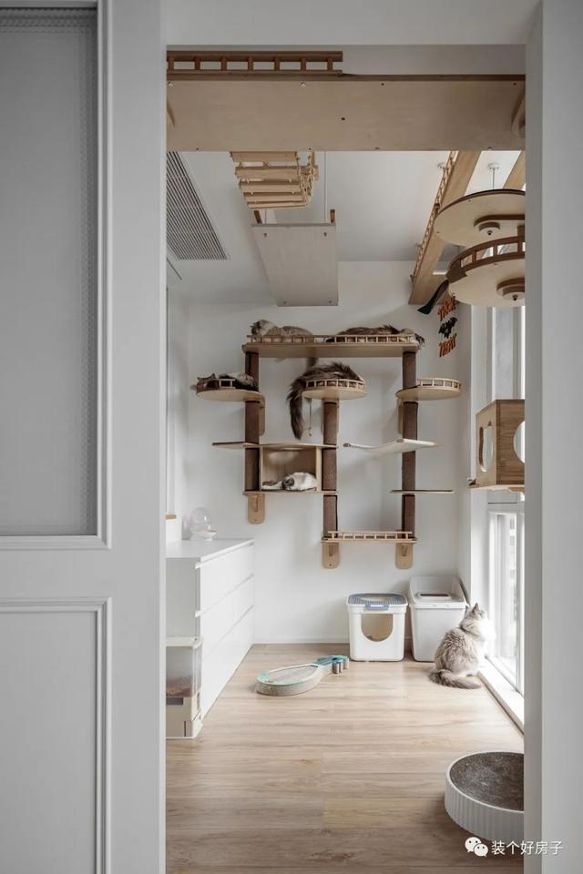 因为家有9只猫咪,生活杂物也特别多,对空间的开放性及收纳储物的设计要求相对偏高。
