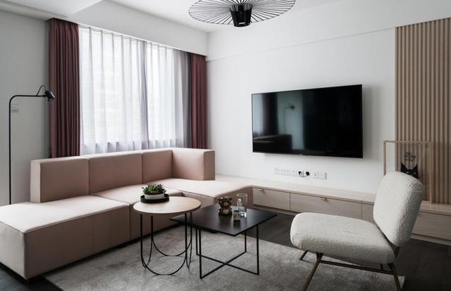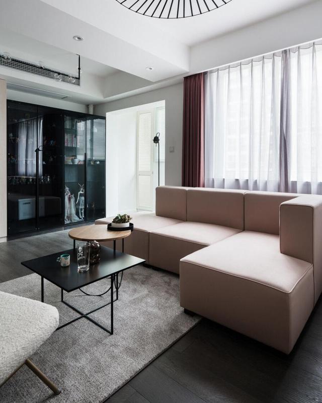 相较于原客厅在南边,将其改到北边后,也必然会出现采光亮度受限的问题。因此,整体以白色调为基础,再通过木色、脏粉等元素来点缀,既保证了空间的明亮与整洁,又不失浪漫、清新的气质。