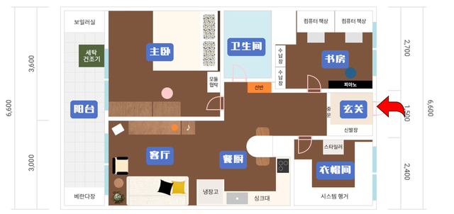 韩式房屋百分之90以上都会有个独立的玄关区,可以将室内外进行有效分隔。本案例是个比较实用的三居室格局,对于前期没有孩子的新婚夫妻来讲,一间作为卧室,一间作为衣帽间,还剩一间作为书房,刚刚好。除此以外,韩国房子的阳台普遍都很大,可以一分为二,一般作为休闲区,一般作为家政间使用。