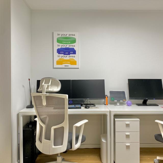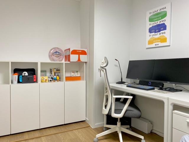 屋主的书房全部采用了比较灵活的家具,比如白色的收纳柜和两人的书桌,这样方便后期随着家庭成员的变化而进行调整。