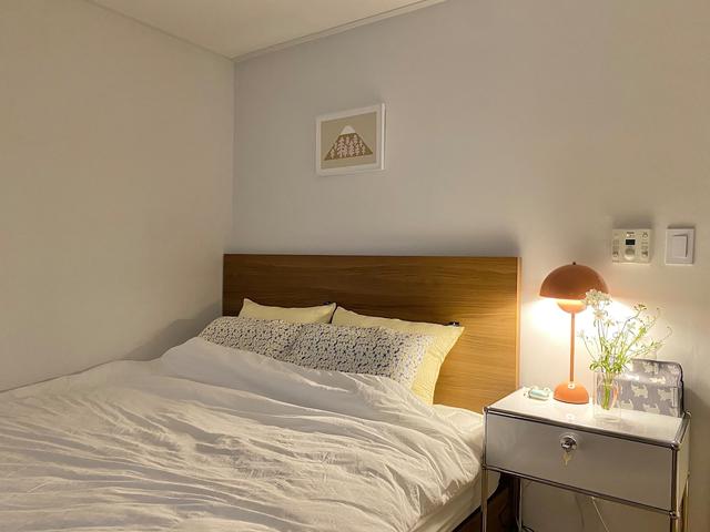 简单而舒适的主卧,床头的小台灯散发着温暖的光线,家对于我们来讲,就是质朴的日常,一方舒适的所在,已是足够。就像《人生果实》影片里说的“在这种安心感中度过每一天,比什么都要美好”。