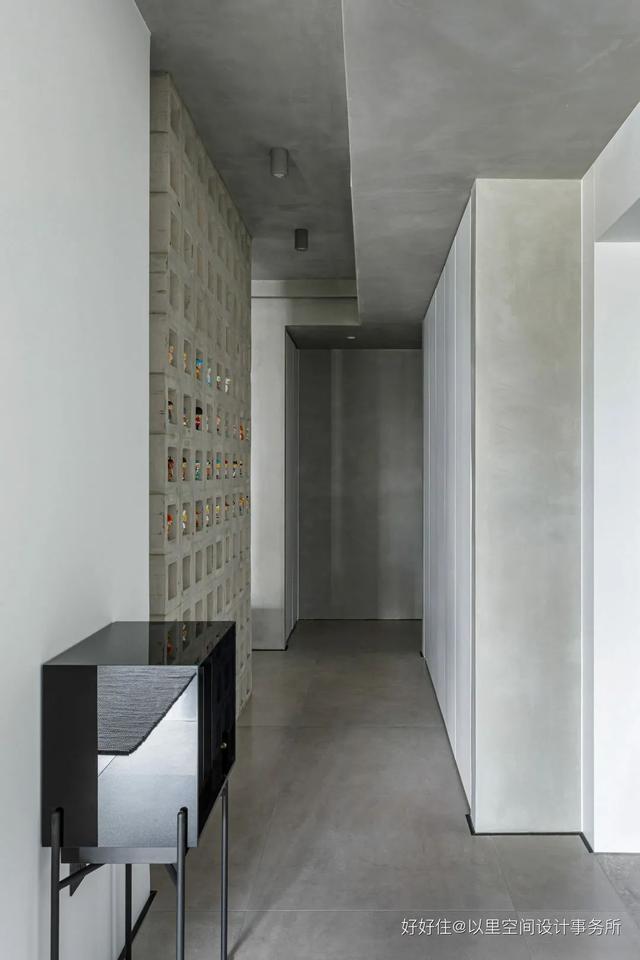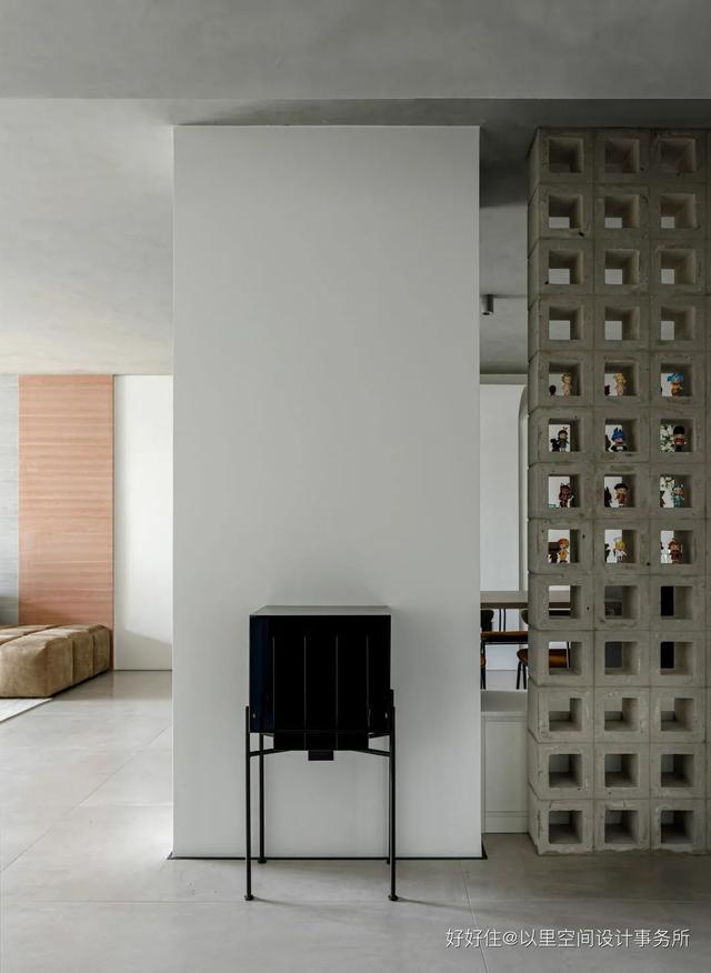 好好住认证设计师@以里空间设计事务所 又双叒带着宝藏作品来啦!在本次介绍的案例中,丰富的空心砖、弧形钢板结构、隐形门、无吊顶、地台等宝藏细节,不仅让这个家在整体视觉上保持极简,并且使空间充满着独特的艺术性与层次感。