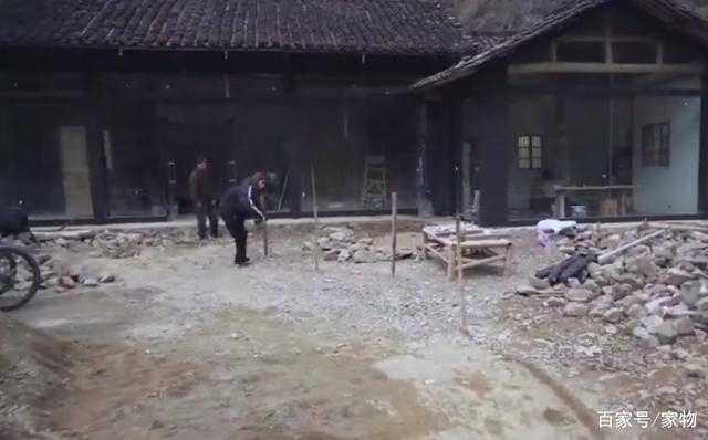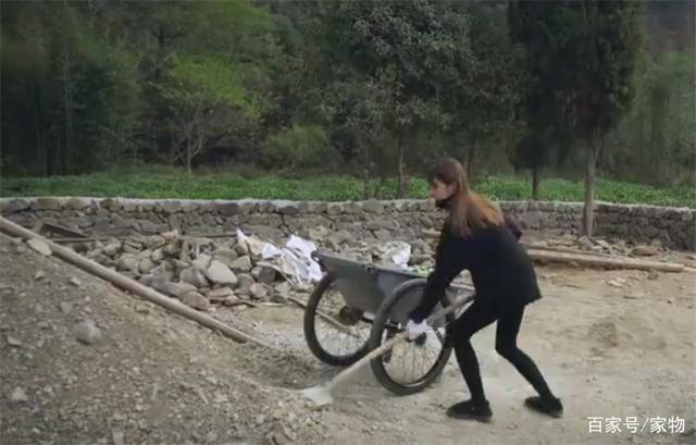 由于自己不够专业,所以她请来施工师傅将土地重新翻新一遍,并让师傅在老宅附近搭建了围墙,为了节省人工费,自己也加入了施工阵容。