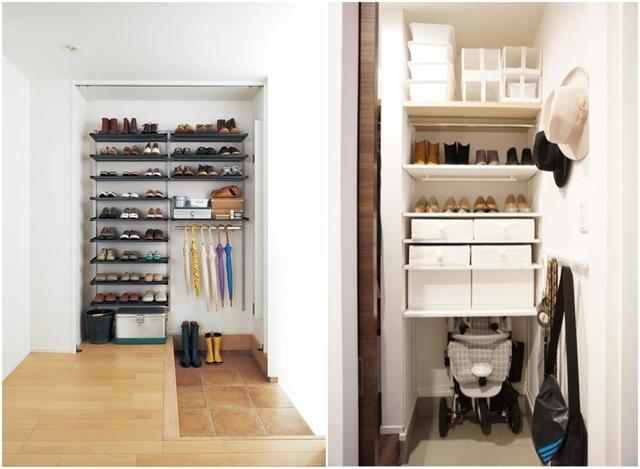 如果玄关没空间,除向旁边借地,也能考虑其他区域,比如楼梯下,单独做出一个小型储物室,哪怕不放鞋子,放些杂物,也比你打柜子强。